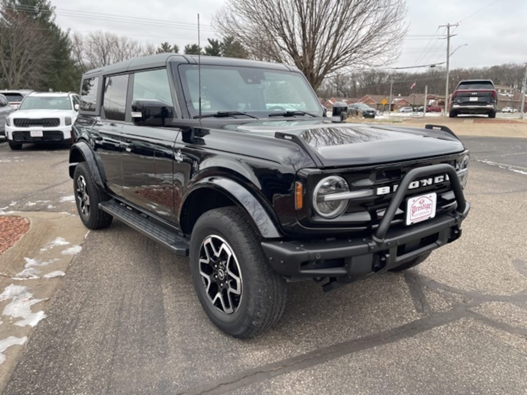 Shadow Black 2022 Ford Bronco Outer Banks 4WD 10-Speed Automatic 2.7L EcoBoost V6 **CLEAN VEHICLE HISTORY REPORT**, **LOCAL TRADE IN**, **ONE OWNER**, 12" LCD Capacitive Touchscreen w/Swipe Capability, 2 Smart Charging USB Ports In Dashboard, 360-Degree Camera, 6 Speakers, Adaptive Cruise Control, Additional Sound Deadening, AM/FM Stereo, Brush Guard, Carbonized Gray Molded-In-Color Hard Top, Compass, Connected Built-In Navigation, Dual front side impact airbags, Emergency communication system: 911 Assist, Engine Block Heater, Equipment Group 314A Lux Package, Evasive Steering Assist, Ford Performance Heavy-Duty Modular Front Bumper, Front Parking Sensors, Front Row Top Panels & Door Storage Bags, Heated Steering Wheel, Illuminated entry, Information on Demand Panel, Integrated roll-over protection, Keyless Entry Keypad, Low tire pressure warning, Occupant sensing airbag, Overhead console, Panic alarm, Radio data system, Radio: B&O Sound System by Bang & Olufsen, Remote keyless entry, Sideview Mirrors, Speed control, Split folding rear seat, Steering wheel mounted audio controls, Telescoping steering wheel, Tilt steering wheel, Universal Garage Door Opener, Variably intermittent wipers, Wireless Charging Pad.