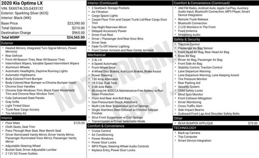 2020 Kia Optima LX Sparkling Silver FWD 2.4L I4 DGI DOHC