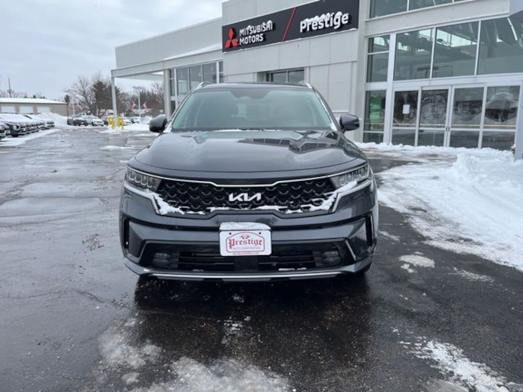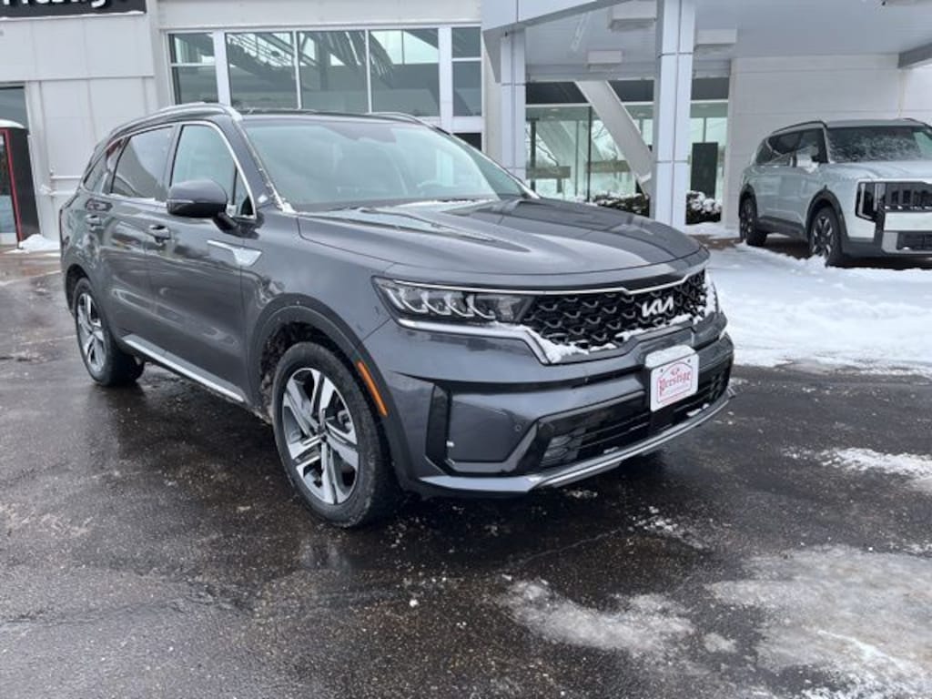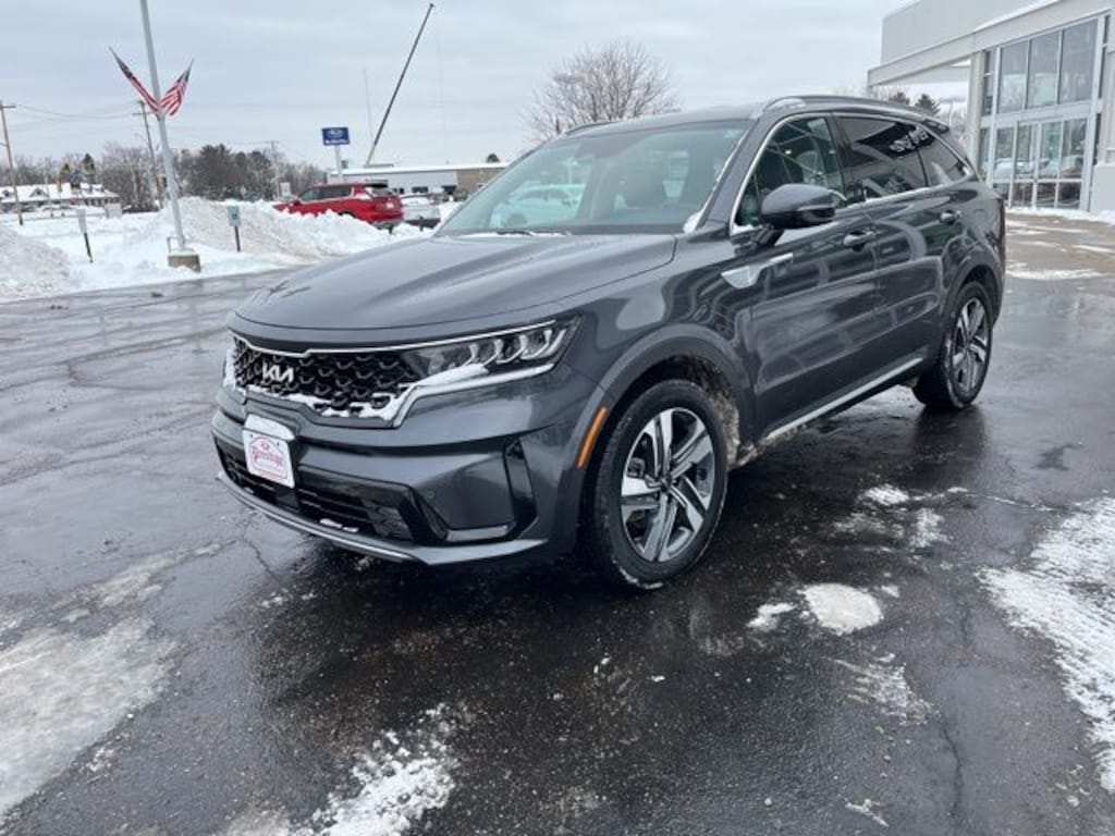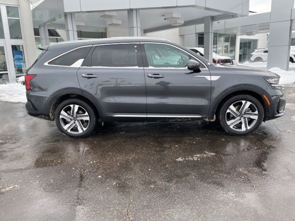 Platinum Graphite 2023 Kia Sorento Hybrid EX AWD 6-Speed Automatic 1.6L I4 DGI Hybrid Turbocharged DOHC 16V LEV3-ULEV70 **CLEAN VEHICLE HISTORY REPORT**, **LOCAL TRADE IN**, **ONE OWNER**, ABS brakes, Delay-off headlights, Front anti-roll bar, Front reading lights, Heated front seats, Low tire pressure warning, Navigation System, Occupant sensing airbag, Outside temperature display, Overhead airbag, Overhead console, Panic alarm, Power passenger seat, Radio data system, Rear anti-roll bar, Rear reading lights, Split folding rear seat, Tachometer, Wheels: 19" Machine-Finished Alloy.
